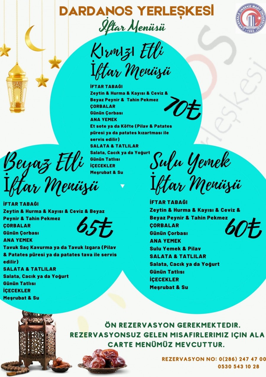 ÇOMÜ Dardanos İktisadi İşletmesi İftar Menüsü